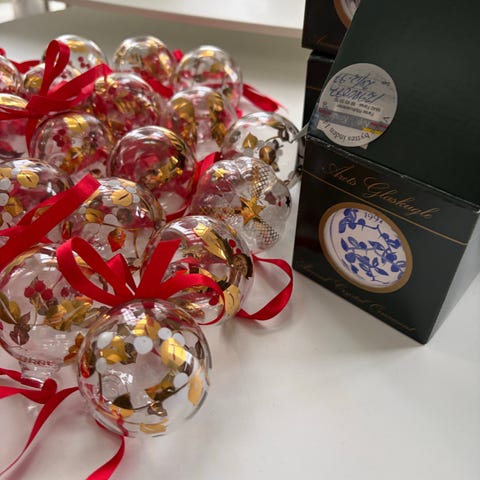 Bing og Grøndahl julekugler / glaskugler - år 1996 og 1998. Rødt bånd til ophæng medfølger.
