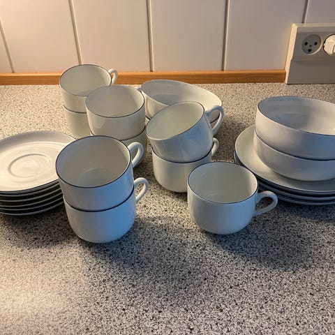 6 stk latte Cup. 6 stk Kaffe Cup men underkop og 12 dessert talerkner. Sælges samlet.