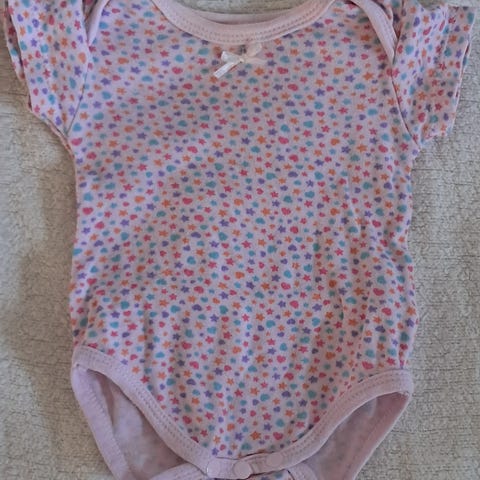 Langærmet bodystocking med små abekatte. Str. 62 Mærke: IdaT.