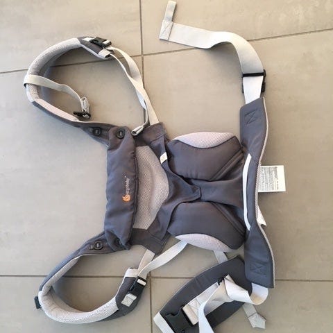 Flot og god bæresele i mærket ergobaby, model 360 Cool Air i farve Carbon Grey.