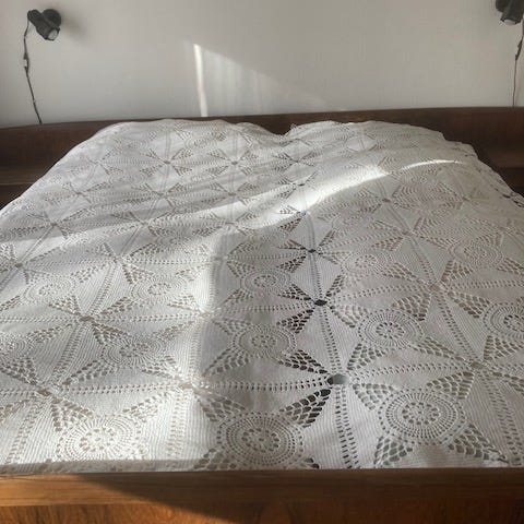 Hæklet hvidt sengetæppe / slumretæppe / sommertæppe / tæppe.