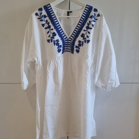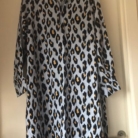 Sommerkjole, Evoked Vila, str. XL, Lyseblå, blå, Viskose, Ubrugt, Helt ny lyseblå med leopard kjole fra Evoked Vila str. 48, stadig med prismærke, nypris 530kr, brystmål 2 x 63 cm, lynlås i hals, lange ærmer, A-form, ikke ryger hjem, kan sendes med Dao