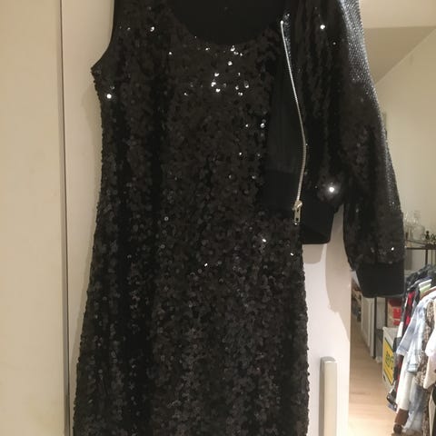 Super smukt eksklusivt sort bukse og bluse sæt med sølv glimmer/små palietter.
