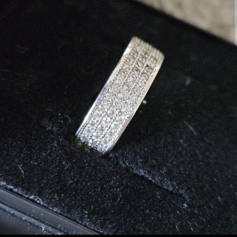 Romance ring i blankpoleret sterlingsølv. Denne klassiske ring er designet med én stor funklende zirkonia i en fatning med 4 grapper. Ringstenen er med talrige mindre zirkonia.