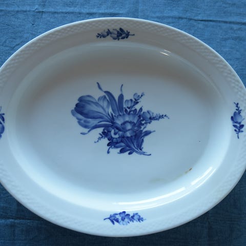 Bladformet fad, Blå Blomst, 23x18 cm.