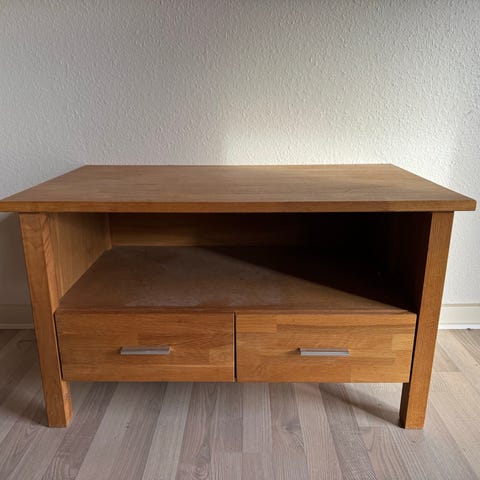 Sælger sko hylde tv bord i hvidmalet træ. Har været brugt som tv hylde. Enkelte steder mangler maling. Meget velholdt. Sendes ikke.