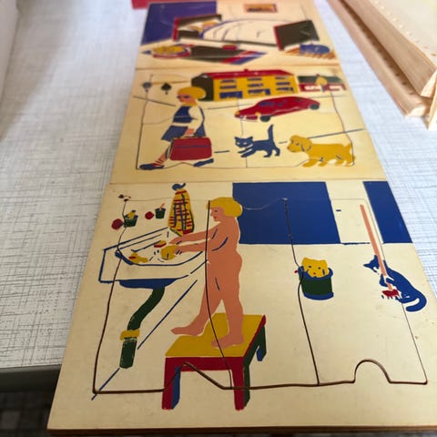 2 stk gamle pudslespil 1 i pap og 1 i træ