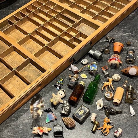 Diverse blandet nips / dims. Fint som sættekasse /sætterkasse pynt fx.