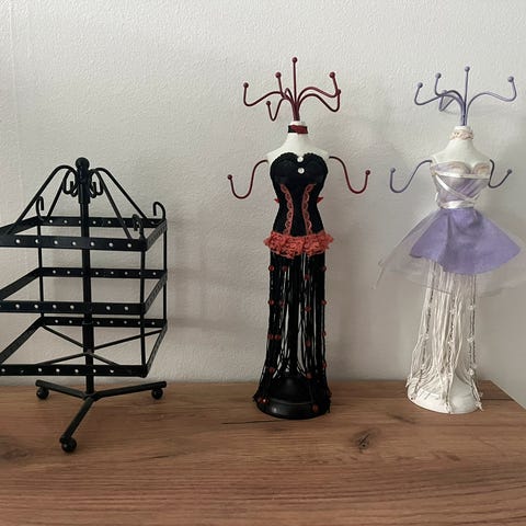 Smukt smykkedisplay i hvidt læder-look