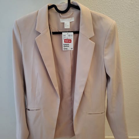 Kort jakke i vævet kvalitet med løs pasform. Jakken har en lille ribkrave, trykknapper foran, paspoleret brystlomme, skulderpuder og forholdsvis lav skuldersøm. Ribkant nederst på ærmerne. Med for.