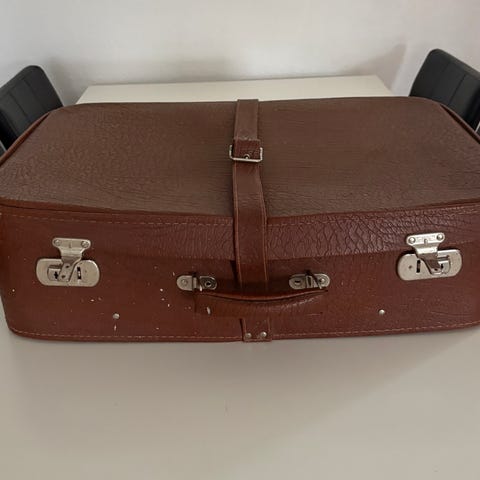 Vintage kuffert, brun læder med 2 hjul.