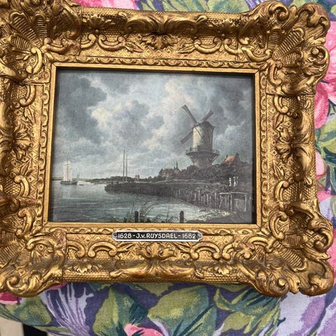 Denne flotte antikke triptykon på et bord til fx. din daglige hengivenhed. Lavet i Italien omkring 1960 og udskåret i fyrretræ, det religiøse kunstværk har tre foldepaneler hængslet sammen, som kan foldes sammen eller vises åbent. Det centrale panel viser Madonna, der holder Kristusbarnet. Madonnaen er vist i en rolig positur, draperet i en blå kappe med en rød beklædning nedenunder, der vugger Jesusbarnet, som stirrer udad. Det er et middelalder- eller renæssance-inspireret udseende, og det detaljerede håndværk og religiøse ikonografi peger på et historisk eller traditionelt design. Den fritstående triptykon er i god stand. Mål: se ift "almindelig" hånd.