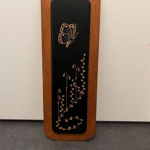 Skulpturelt træbillede (Ib Laursen) af en fransk aktie i rolige naturlige farver.
