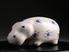 5½ cm langt og 2½ cm høj er det lille fabeldyr. Flodhesten har slået fusserne - se sidste billede - deraf prisen.