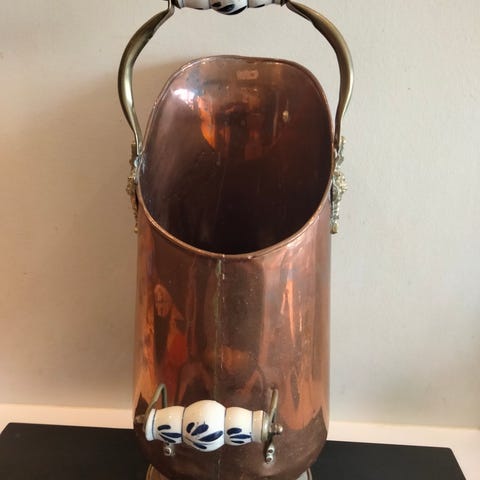 Kobber koksspand med hældetud sælges. Højde: 14 cm, Ø 14 cm