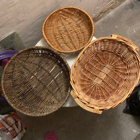 Kurve, Har 3 fine grå kurve med bomuldsbetræk som er aftageligt. De er rene og nyvasket. Store Mål: 33x26x23cm høj. Små: 28x21x21cm