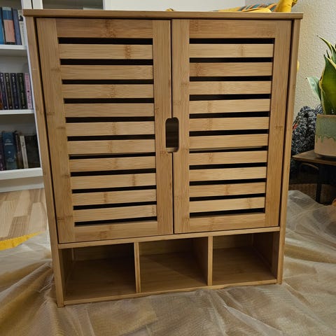 Helt ny reol med hylder og skuffe i 100% bambus. Har aldrig været brugt.