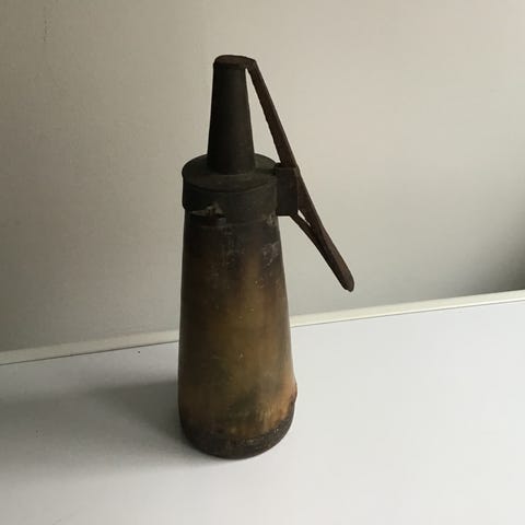 Krudthorn, Horn (okse), 125 år gl., Antikt svensk krudthorn til sortkrudt. Fremstillet af kohorn med prop og bund af træ. En virkelig fin antikvitet med flot patina. Måler 14 x 7 cm. Står på Mols men kan gratis leveres I Aarhus og Ebeltoft eller sendes billigt på købers regning.