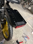 Reproduktion af baggagebærer til Piaggio Bravo. Tilpasningsarbejde kan være påkrævet. Her er der et billede af mit eget resultat