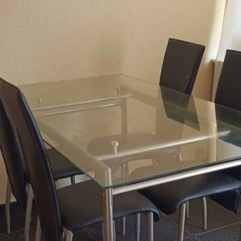I 3/4” galvaniseret vandrør 64x159cm med klar glasplade 85x180cm med slebne kanter.
