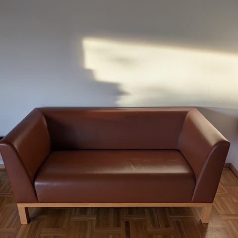 2 Pers. sofa model 315. Stel i eg, rødt læder ingen knapper mangler
