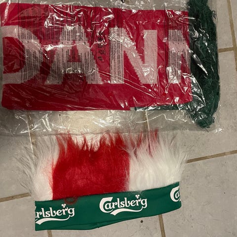 To stk “hår” samt halstørklæde og en termotaske til 6 dåseøl som aldrig er brugt.