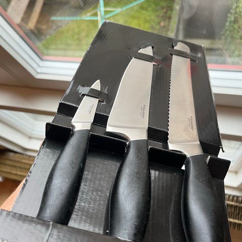 Rustfrit stål, Kokkekniv, Fiskars, Som ny