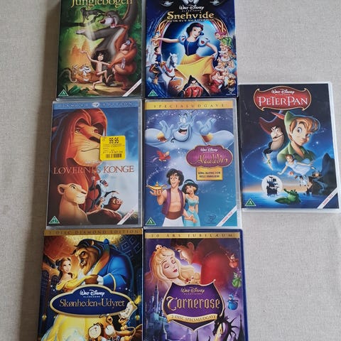 Indeholder:Snehvide - Pinocchio - Disney Fantacia - Dumbo - Bambi - saludos amigos - Make mine Music - Fun and Fancyfree - melody time - Askepot - Alice i eventyrland -Peter Pan - Lady og Vagabonden - Tornerose - 101 dalmatinere - Sværet i stenen - Junglebogen - Aristocats - RobinHood - Winner of the Pooh ( Peter Plys) Bernard og Bianca - Mads og Mikkel - Den sorte gryde - Bacil Mus- Oliver og Company - Den Lille Havfrue - Bernard og Bianca 2 - Skønheden og Uhyret - Aladdin - Løvernes konge - Pocahontas - Klokkeren fra NotreDame - Hercules - Mulan - Tarzan - Fantacia 2000 - Kejserens nye Klæder - Atlantis - Lilo Stitch - Skatte Planeten - Bjørnebrødre - De Frygtløse - Lille Kylling - The Wild - Meet the Robinsons - Bolt - Prinsessen og frøen - To på Flugt - Vilde Rolf - Frozen - Big Hero 6