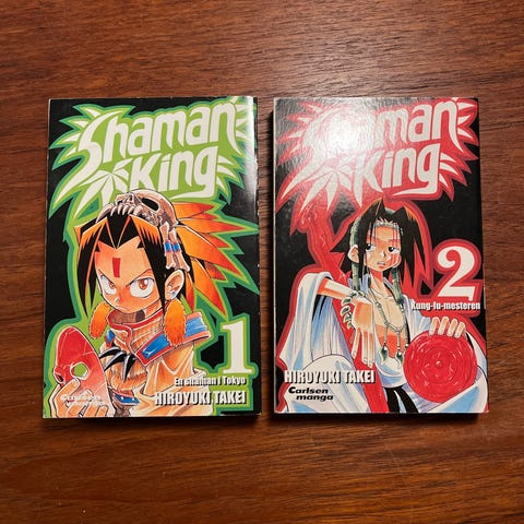 Manga Shaman King 1 til 12. Nyprisen var 69 kr per bog. Pris for alle er 150 kr. Der er 2 stk af nr 11.