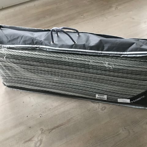 Originalt tæppe til vogndelen. Tæppet har været opbevaret sammenfoldet, derfor ses en lille fold midt på tæppet. Jeg formoder den forsvinder med tiden. Tæppet er i øvrigt pænt, velholdt og pletfrit.