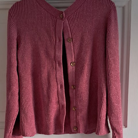 (81) Lilla cardigan. Str. 110. Med glimmer. Langærmet.