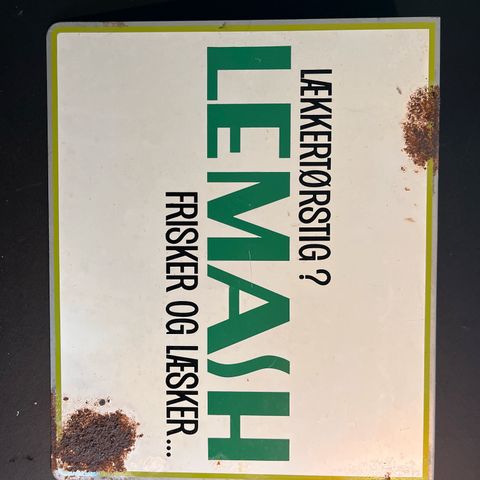 Gammelt emaljeskilt/kasseskilt Lemash