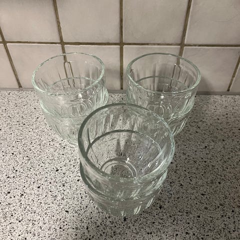 Brugt en gang,ligner som nye, 4 stk. 4 skeer,Rød, blå,gul og turkis farve,passer til børne fest,plastik ligner glas, har 2 sæt, en sæt er 20kr.