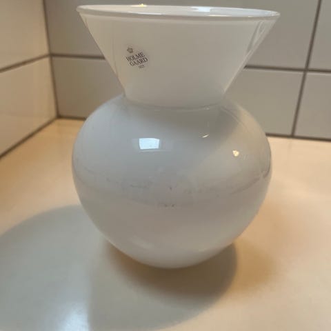 Vasen er udført i klassisk opalglas, som kendetegner mange af Jørgensens ikoniske designs for Holmegaard Glasværk.