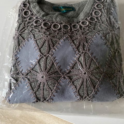 super flot sweater / bluse i tre brune nuancer m txt "LOVE". Der ingen mærker i og kan ikke huske, hvor jeg købte den. Svarer til str. M / L m stræk.