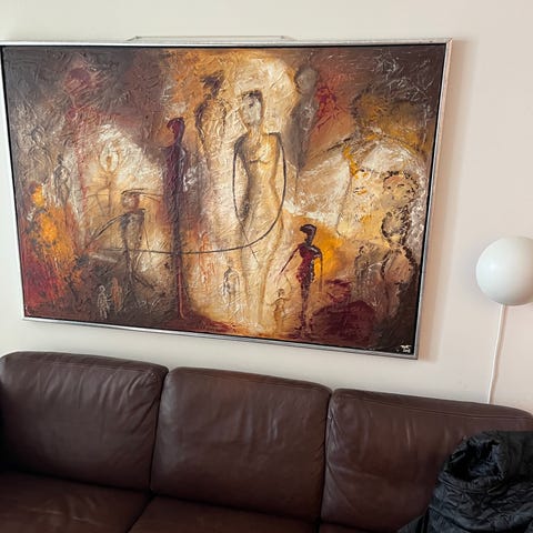 2 Kunstmalerier af Gruk i sort ramme b 103 x h 154 cm. Pr. stk. 3.500 kr. Samlet pris 6.000 kr.