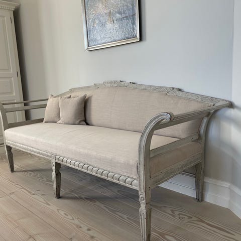 Biedermeier sofa, Smuk antik Beidermeier sofa, fra 1800 tallet, i flot stand, både træ og betræk.