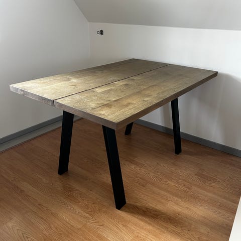 Bordpladen er lavet af 2 planker skåret fra et helt træ.