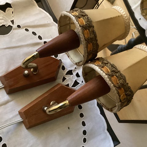 Væglampe, Forskellige væglamper i teaktræ. Virker. Prisen er pr. stk.
