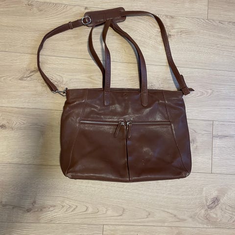 Tasken er brugt men i god og funktionel stand med mindre brugsspor. Lynlåse og rem fungerer som de skal – se billeder.