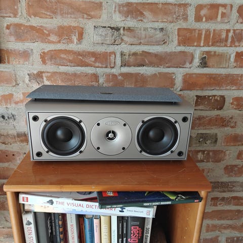 Højttaler, Acoustic Energy, Aegis Center, 120 W, Perfekt, Særdeles ydedygtig high end centerhøjttaler med Phil Jones' legendariske alu-cone bas/mellemtone-enheder (5") og en specialudviklet diskantdome fra Vifa. Konstruktionen er en 2½-vejs med basrefleks-ladning. Lydtrykket og opløsningen er langt over gennemsnittet. Min salgspris er derimod usædvanlig lav: 500 kr.