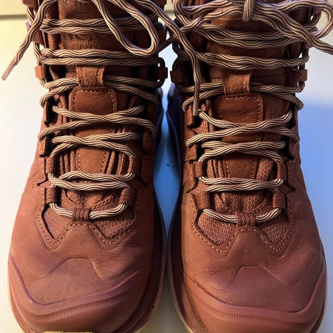 Hawneg vandrestøvler str.40,5 og har en ekstra brede foran, hvis man har en knyst eller andet så støvlen ikke klemmer.