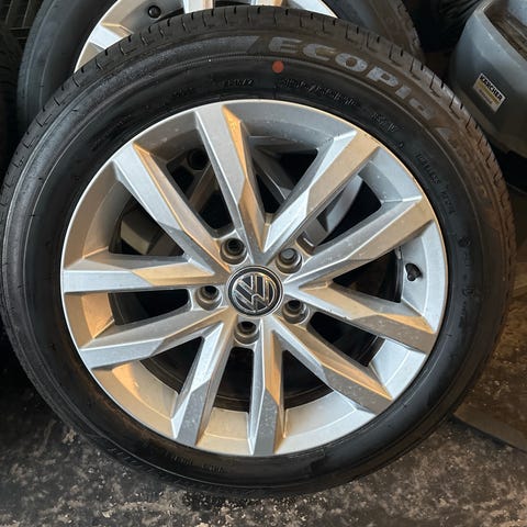 4 originale VW fælger med dæk, 2 af dækkene er helt nye Continental premium contact 7, nypris kr. 2000,- stk. og kun kørt med i en uge, de 2 andre er i god stand, også Continental.