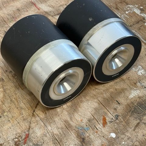 et sæt fine superdiskanter måske aldrig monteret men jeg ved det ikke, flot stand eneste er lidt på "den blå coral krans" som er aluen der pga alder har skubbet lidt til den blå farve , incl stands, men FREMSTÅR flot, samme membran som coral h-104 og h-100 og stortset samme data kan sendes , evt bytte