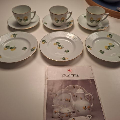 3 sæt tekopper sælges samlet (slidt guldkant på underkop samt forneden på kop: 150kr