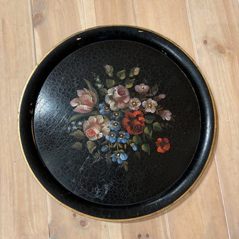 Fremstillet i sortlakeret metal med en bund af bambus.