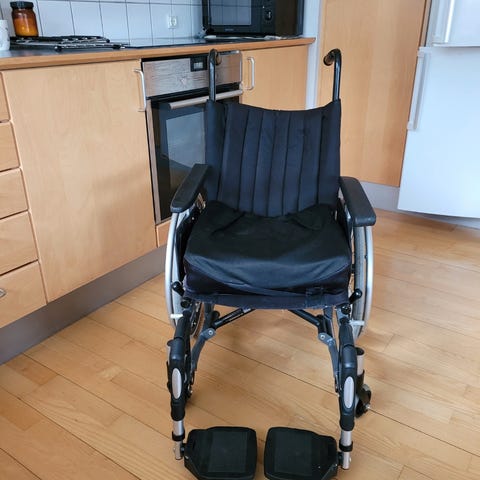 Kørestol som nemt indstilles til brugerens behov. Kan klappes sammen. Hjul aftages nemt. Trykaflastende pude (vandtæt) medfølger (passer til stol). Sæde dimensioner: Bredde: 45 Dybde: 48
