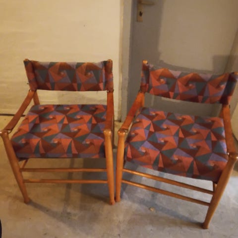 Virkelig smukke safaristole - natur hvidt stof og lidt mørkere træ prisen er pr stk- kan afhentes i min butik på Østerbro Vennemindevej 7 kld TV
