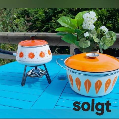 Søgeord: Rød emalje, Emalje, Retro, Køkkenting, Emaljegryde, Gryde, Suppegryde, Samlerobjekter,Samlerobjekt, 70erne,