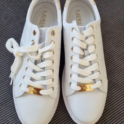 Hvide sneakers med gulddetaljer, str. 41, Ralph Lauren